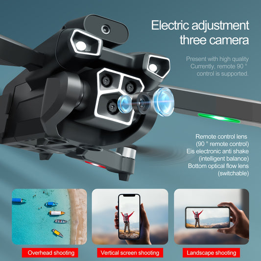 4K HD Three Camera Brushless Drone - Intelligent Obstacle Avoidance, Auto Return, One-Touch Take-Off/Landing, 360° Beauty Mode, 3 Rechargeable Batteries, Carrying Case, Wi-Fi Connectivity