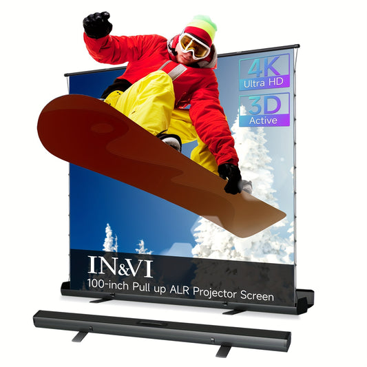 IN&VI Portable ALR Manual Pull Up Projector Screen - 100in, 178° Viewing Angle, 3D/4K HD, 16:9, Wrinkle-Free Design, Outdoor Movie Home Theater Backyard Night Viewing